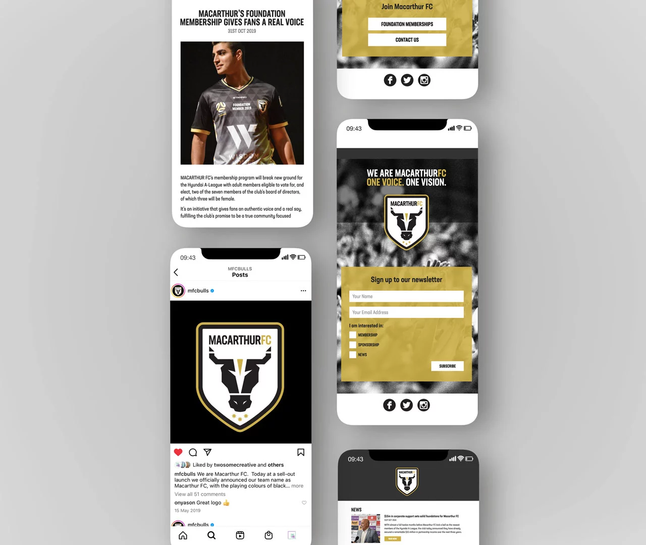Before we even started thinking about the design we needed to define what and who Macarthur FC was. To begin this process we worked closely with the new club in developing a strategy to understand the area and people this new club would represent. We very quickly understood that this particular football community was crying out for representation and a voice in the A-League.